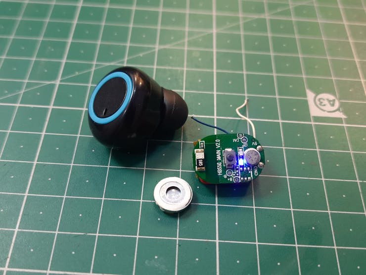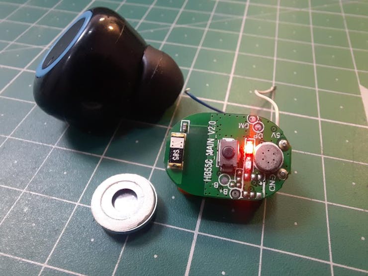 這是我的 5.1 耳塞,我打開其中一個(gè),在從輸出端移除小揚(yáng)聲器后,它可以變成函數(shù)發(fā)生器。這只是一個(gè)通道,一根用于信號,另一根用于接地。里面有一個(gè)小電池,使用起來非常便攜。通過這種方式,您還可以破解您的耳塞作為頻率發(fā)生器。