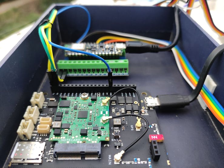 從傳感器收集的數(shù)據(jù)將使用 Blues Notecard 和 Blues Notecarrier 發(fā)送到 Blues Notehub 云。