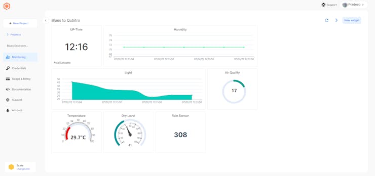 一旦我們的傳感器數(shù)據(jù)到達(dá)云端,我們將使用 Qubitro 對其進(jìn)行可視化和后處理。