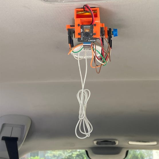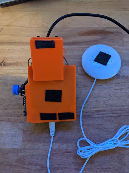 設(shè)備全部連接好后,我們現(xiàn)在可以安裝電池外殼和 Velcro(用于將 10n2 設(shè)備安裝到車頂)。電池外殼粘在相機(jī)支架的底部。這有兩個(gè)目的;1) 固定電池 (duh) 和 2) 為相機(jī)捕捉圖像和執(zhí)行實(shí)時(shí)分類提供正確的角度。您還可以安裝輕型 3.5 毫米。杰克揚(yáng)聲器作為這一點(diǎn)。