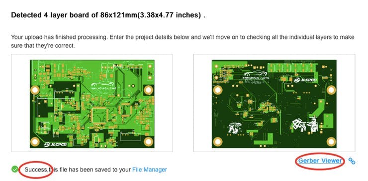 在這里,您可以看到我們已成功上傳 zip 文件。然后我們可以使用 Gerber Viewer 功能檢查我們的電路板,以確保頂層和底層看起來都不錯。