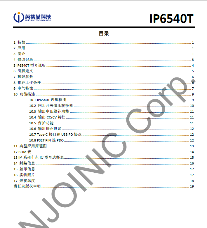 - IP6525T?最大輸出18W集成快充輸出協(xié)議的降壓 SOC
