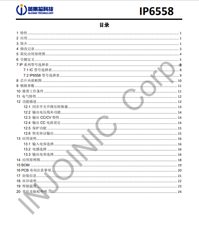 - IP6525T?最大輸出18W集成快充輸出協(xié)議的降壓 SOC