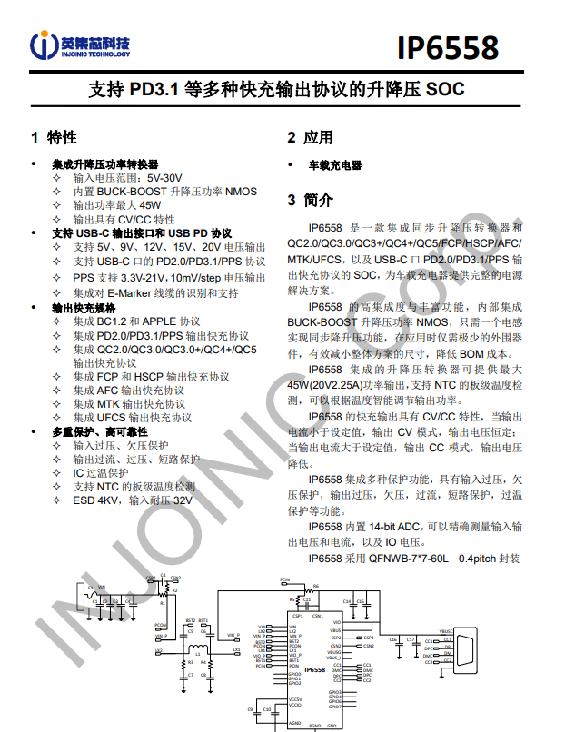 IP6558 支持PD3.1等多種快充輸出協(xié)議的升降壓SOC