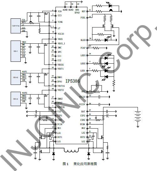 IP5386:支持雙向SCP、PD3.0等快充協(xié)議支持2~4節(jié)串聯(lián)電池最大功率45W的移動電源SOC