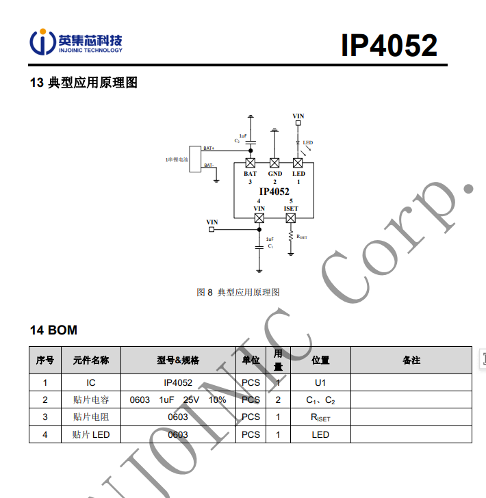 IP4052 集成功率 MOS,使其在應(yīng)用時(shí)僅需極少的外圍器件,并有效減小整體方案的尺寸,降低BOM 成本。