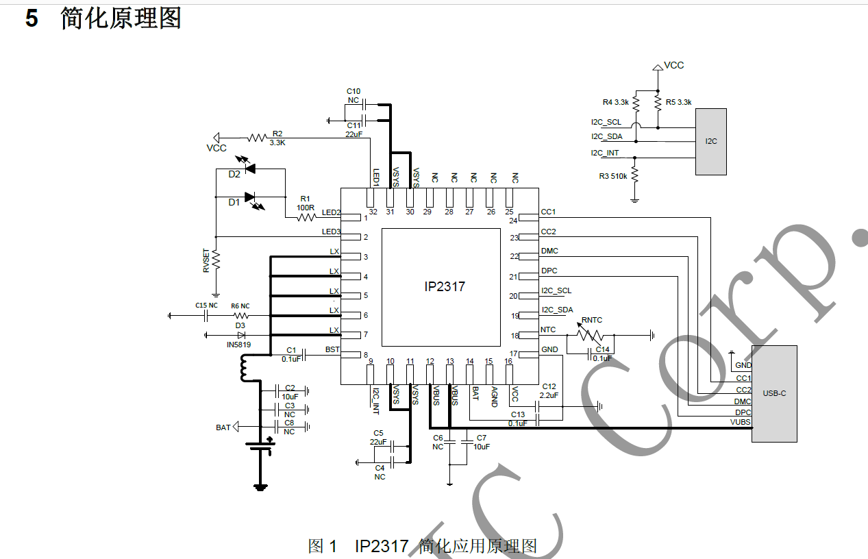 IP2317 集成 NTC 保護功能,配合 NTC 電阻可實現(xiàn)充電 NTC 保護。