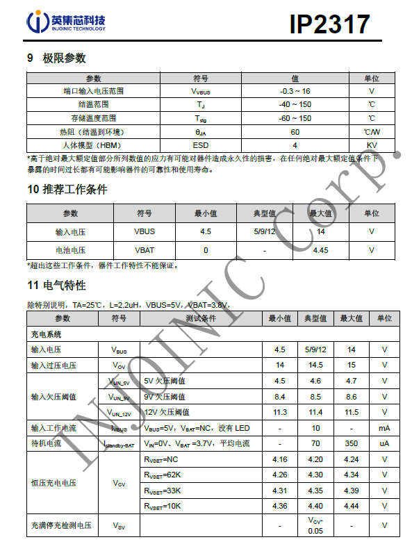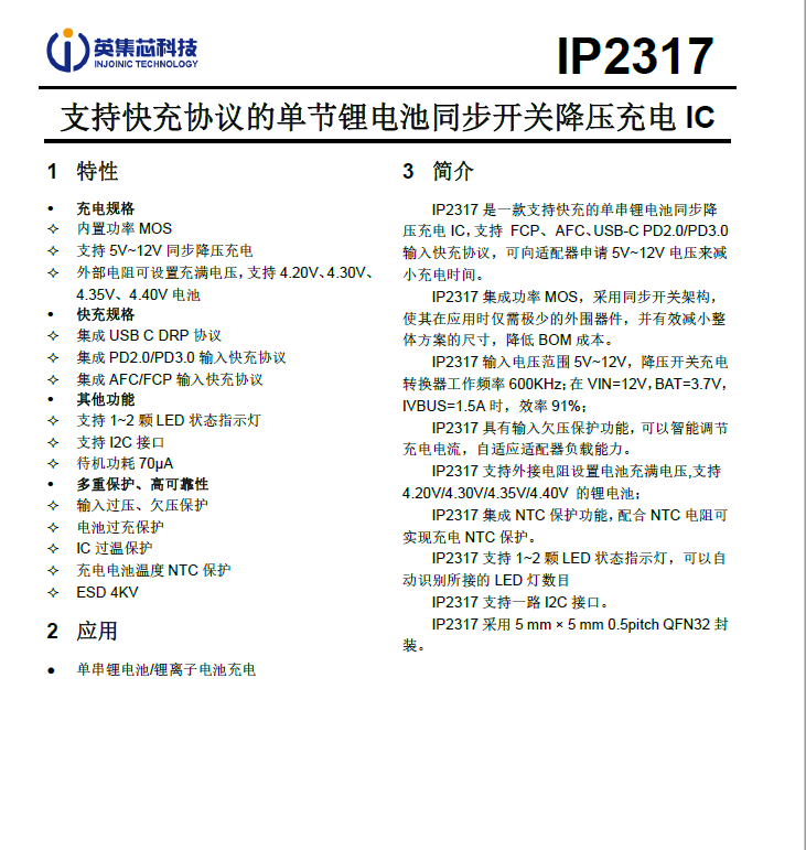 IP2317支持快充協(xié)議的單節(jié)鋰電池同步開關(guān)降壓充電 IC
