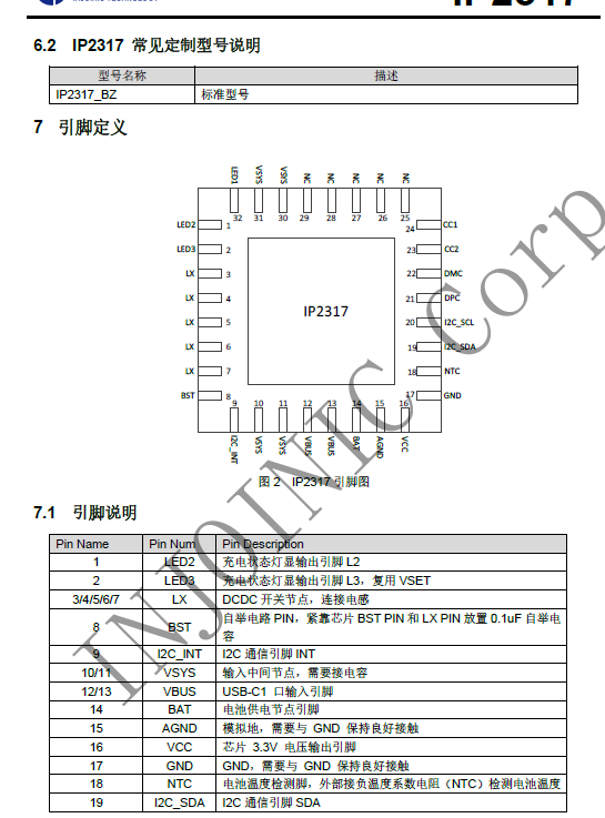 IP2317 采用 5 mm × 5 mm 0.5pitch QFN32 封裝。
