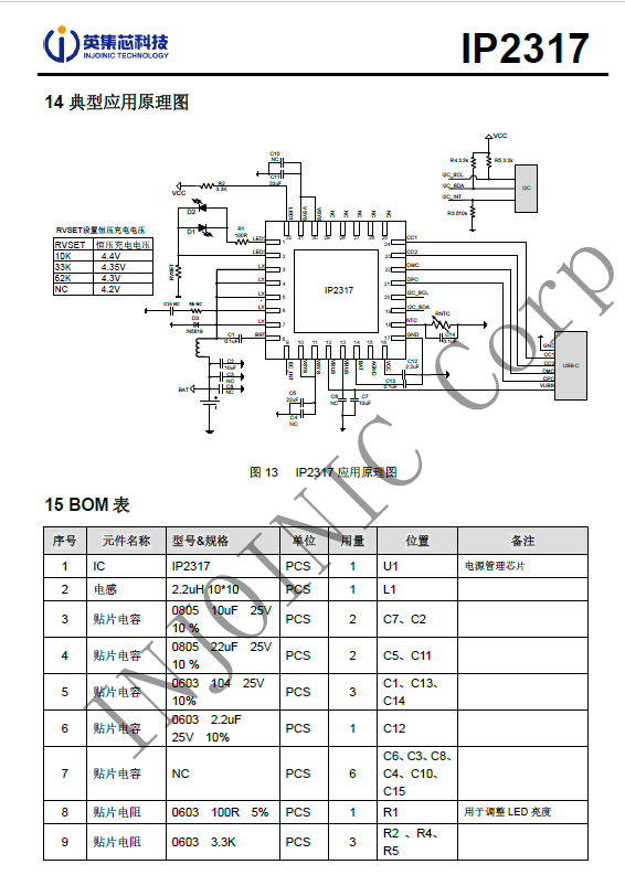 IP2317 支持外接電阻設(shè)置電池充滿電壓,支持4.20V/4.30V/4.35V/4.40V 的鋰電池;
