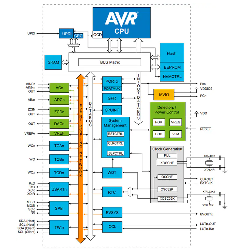 Microchip Technology AVR64DD32/28 8位多電壓I/O MCU基于AVR? CPU,設(shè)有硬件乘法器,在1.8V至5.5V的...
