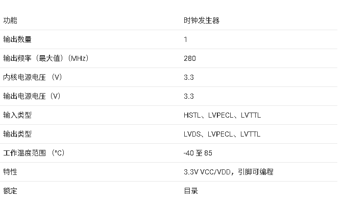 CDCL1810 是一款高性能時(shí)鐘分配器??删幊谭诸l器 P0 和 P1,對(duì)輸出頻率與輸入頻率的比值具有很高的靈活性: F ~外~ = F ~在~ /P,...