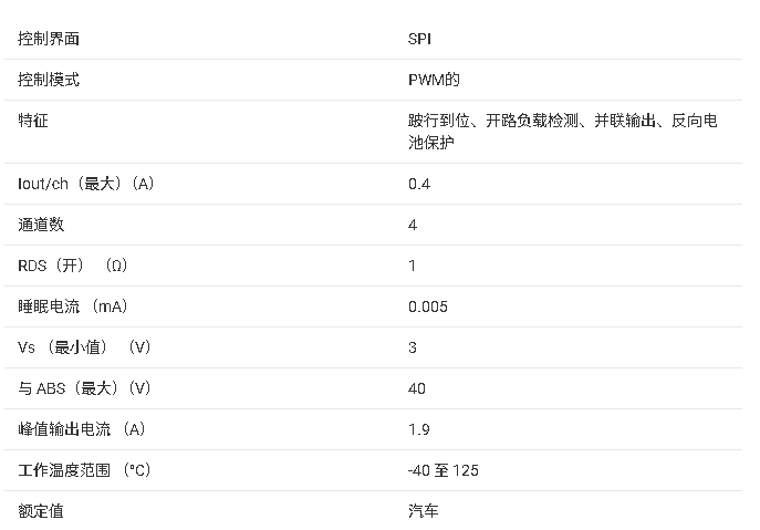 DRV81008-Q1 是一款八通道低側(cè)驅(qū)動器,具有集成保護(hù)和診斷功能。它設(shè)計用于控制汽車和工業(yè)應(yīng)用中的繼電器。 具有菊花鏈功能的串行外設(shè)接口 (...