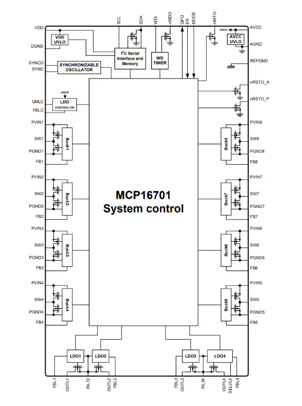 Microchip Technology MCP16701電源管理集成電路 (PMIC) 集成了八個DC-DC降壓式穩(wěn)壓器、四個300mA LDO和一個...