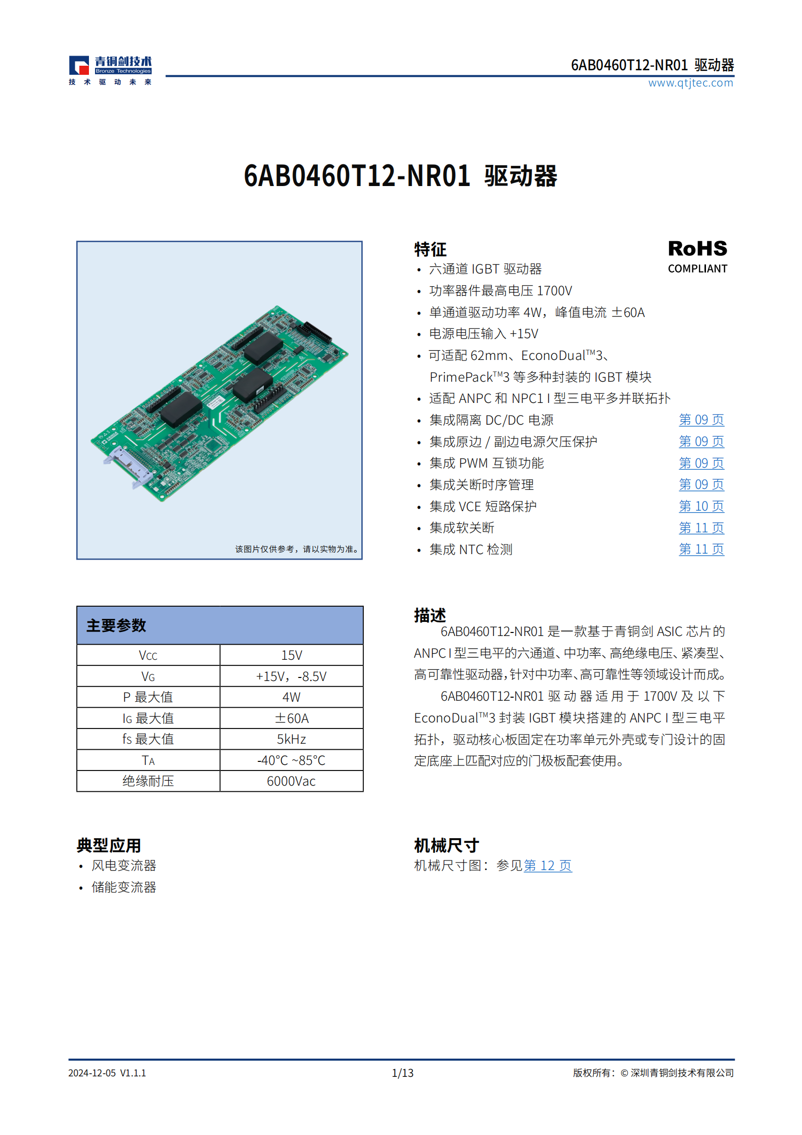 1QP0635V33-C驅(qū)動(dòng)器是基于青銅劍自主開發(fā)的ASIC芯片設(shè)計(jì)的單通道、大功率、高可靠、高集成度IGBT驅(qū)動(dòng)器,開關(guān)頻率最高可達(dá)10kHz,專門為...