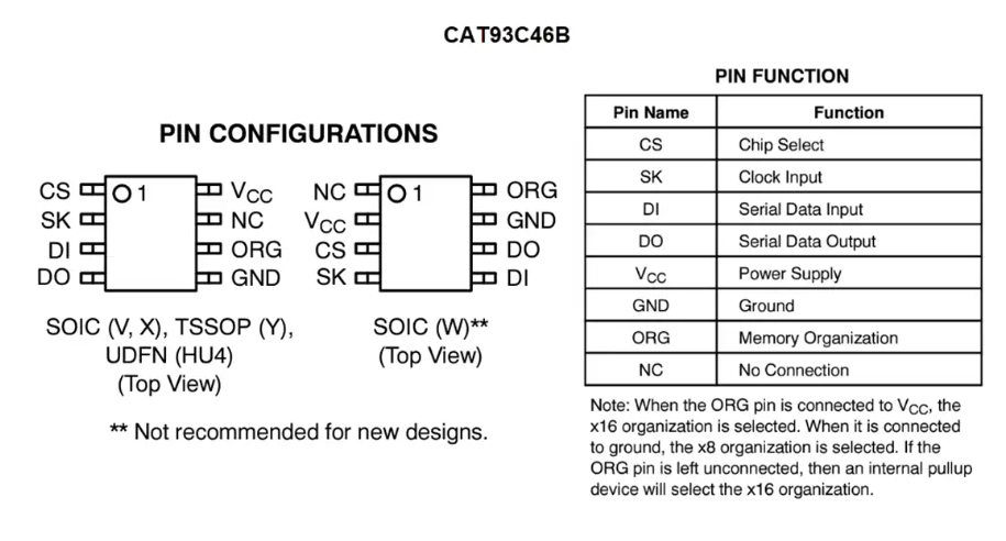 安森美 (onsemi) CAT93C86 16Kb Microwire串行EEPROM是一款配置為16位(V~CC~的ORG引腳)或8位(GND的OR...
