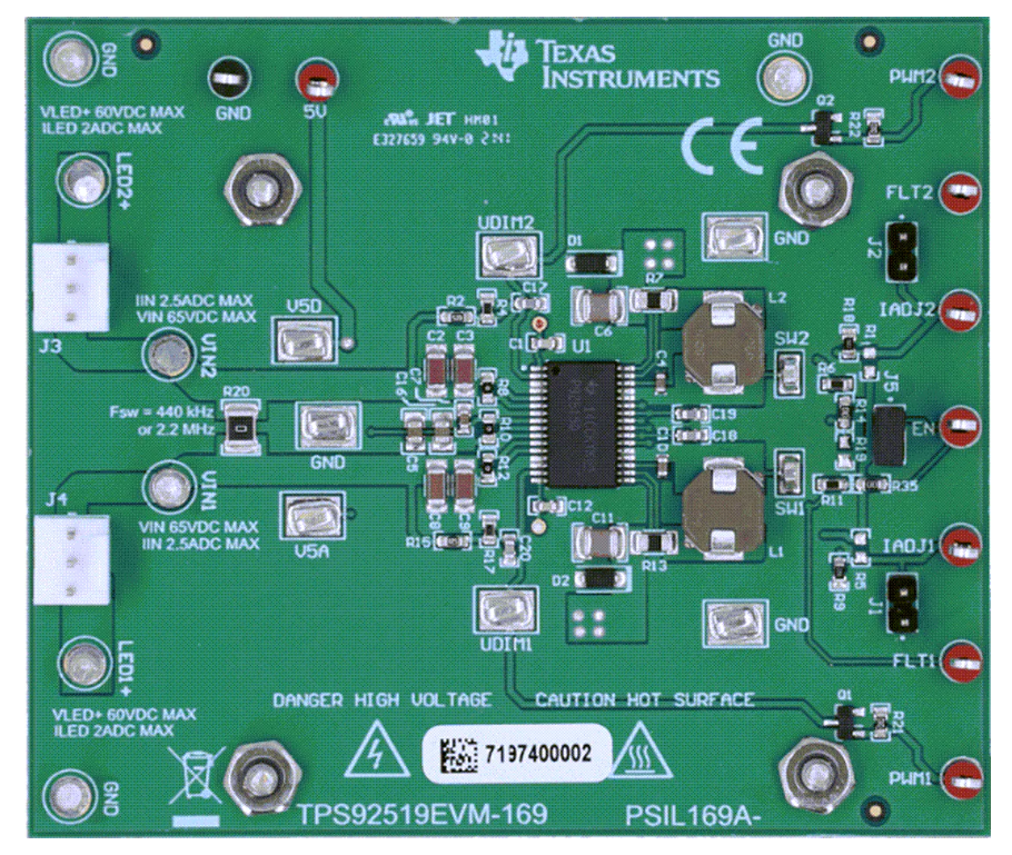 Texas Instruments TPS92519EVM-169驅(qū)動(dòng)器評(píng)估模塊 (EVM) 采用TPS92519-Q1器件,該器件是一款集成電路,提供...