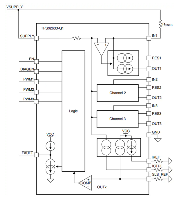 德州儀器TPS92633-Q1三通道高側(cè)LED驅(qū)動(dòng)器技術(shù)解析