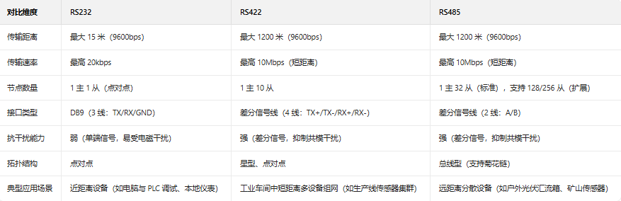 在串行通信領(lǐng)域,RS232、RS422和RS485是三種常見的接口標(biāo)準(zhǔn)。它們各自具有不同的特點(diǎn)和優(yōu)勢,適用于不同的應(yīng)用場景。本文將詳細(xì)探討這三種接口在物...