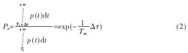 負(fù)指數(shù)分布的無記憶特性,決定了對于呼叫持續(xù)時長遵循此分布的正在通話用戶,它的呼叫結(jié)束時間不受其已經(jīng)歷通話時長的影響。設(shè)已經(jīng)歷通話時長T1的正在通話用戶在T1+Δτ時刻以后呼叫結(jié)束的概率為Po,則: