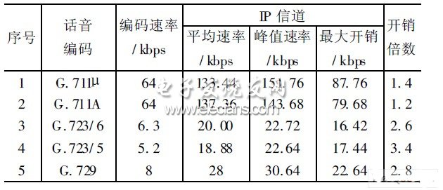 表4 某型號VOIP 設(shè)備實測數(shù)據(jù)
