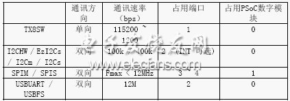 USBUART和USBFS接口都不占用PSoC的數字 / 模擬模塊資源,提供了從PSoC到主機的USBFull Speed雙向連接。