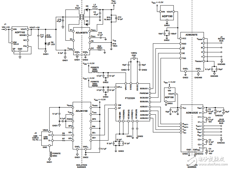 多種功能的隔離電路,早期ADI推出的adm2582e和adm2587e很好的解決了這個(gè)問(wèn)題,他將電源、隔離、接口485三種功能的電路完美的集成到一顆芯片,產(chǎn)品的小型化做出了不可磨滅的貢獻(xiàn);但是我們今天