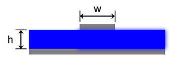 Units do not matter; use same units for (w) and (h), waveport size will be in the same units as (w) and (h). The results should only be used as an estimate for the waveport size. Always perform a Solve Ports Only solution to ensure the waveport is correct. Calculation assumes that you are using a 50 Ohm microstrip transmission line.