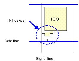 不論TFT板的設計如何的變化,制程如何的簡化,其結構一定需具備TFT device和控制液晶區(qū)域(光源若是穿透式的LCD,則此控制液晶的區(qū)域是使用ITO,但對于反射式的LCD是使用高反射式率的金屬,如Al等)