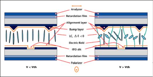 MVA技術因液晶的特殊排列模式不但提高面板視角并解決大部份灰階反轉的問題。