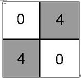 雖然第一種算法只涉及處理一個像素,但是對于液晶這種本身“刷新”率不高的顯示技術(shù)來說,這樣的實現(xiàn)會發(fā)生不可避免的像素抖動現(xiàn)象。于是就出現(xiàn)了第二種實現(xiàn)“抖動”的方法:利用四個像素組成的像素方塊陣,對角線方向的兩個像素分別顯示相同的白色或者4級灰度,使用在在觀察距離上就會得到2級灰度的顏色信息。