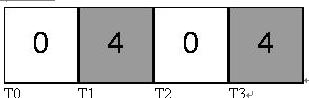 我們再看看看1級灰度是怎樣實現(xiàn)的,如果采用第一種方法T0, T1, T2 三個時刻像素都要顯示白色,而到了T3時刻顯示4級灰度(因為TN面板像素無法直接顯示1、2、3級的灰度),于是觀察者就得到(0+0+0+4) /4=1一級灰度,可以我們也看到了,要得到一個顏色要經(jīng)過4個周期,這樣的時間明顯有些長了。