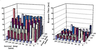 正如我們上面所說,以往廠商在ISO大規(guī)范給出的白黑白響應(yīng)時間指標下有太多的可操作空間,以致使得單純的響應(yīng)時間指標已經(jīng)不具備太多可信價值,那么從何種角度出發(fā)去得到更有實用價值的響應(yīng)時間指針呢,答案就是在去年下半年有些廠商開始推廣的“灰階響應(yīng)時間” 。