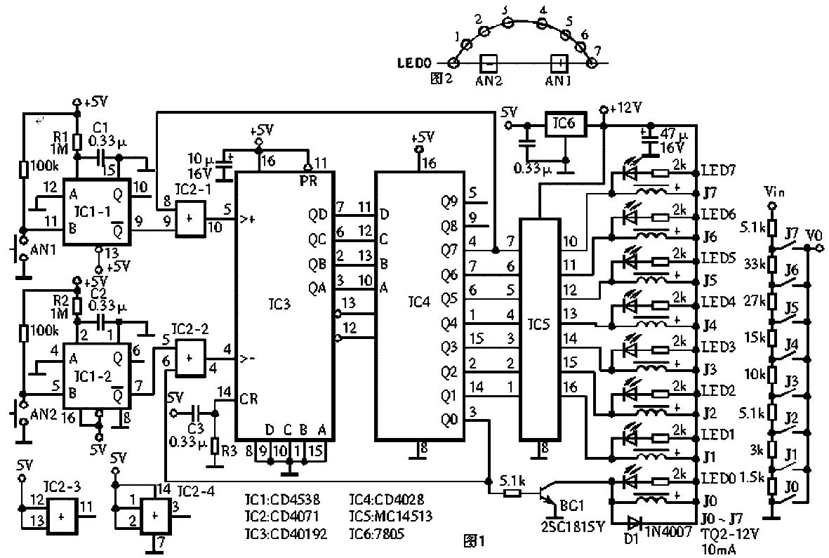 八級(jí)觸摸音量控制器電路圖