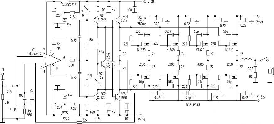 電路圖以及音箱圖紙 質(zhì)醇厚的純甲類功放電路圖紙 先鋒M22K功放電路圖紙 經(jīng)典分立元件功放電路圖集 [此貼子已經(jīng)被作者于2008-12-26 12:59:27編輯過]