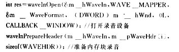 本系統(tǒng)是要把語音直接轉(zhuǎn)換為數(shù)據(jù),放在內(nèi)存中,而不是存為語音文件,而且播放語音時(shí),也是直接播放語音數(shù)據(jù),而不是播放語音文件。這樣的好處是省略了讀寫硬盤的費(fèi)時(shí)操作,提高了語音通話的實(shí)時(shí)性。要完成上述語音操作,編程語言中提供的容易使用的高級(jí)多媒體語音函數(shù)是無法勝任的,只能通過Windows MDK(Multimedia DevelopmentKit)中的多媒體低層音頻服務(wù)來實(shí)現(xiàn),這一類函數(shù)和結(jié)構(gòu)的名字一般都以“wave”作為前綴。Windows下錄制或播放音頻數(shù)據(jù),其主要操作就是將音頻數(shù)據(jù)讀出到音頻設(shè)備驅(qū)動(dòng)程序和從音頻設(shè)備驅(qū)動(dòng)程序?qū)懭氲牟僮?。低層波形音頻函數(shù)通過WAVEHDR結(jié)構(gòu)的音頻數(shù)據(jù)塊對(duì)設(shè)備驅(qū)動(dòng)程序的音頻數(shù)據(jù)進(jìn)行上述控制。以錄音為例,其準(zhǔn)備工作主要有幾點(diǎn),打開錄音設(shè)備,獲得錄音句柄,指定錄音格式,分配若干用于錄音的內(nèi)存。開始錄音時(shí),先將所有內(nèi)存塊都提供給錄音設(shè)備用來錄音,錄音設(shè)備就會(huì)依次將語音數(shù)據(jù)寫入內(nèi)存,當(dāng)一塊內(nèi)存寫滿,錄音設(shè)備就會(huì)發(fā)一個(gè)Window消息MM WIM DATA給相應(yīng)的窗口,通知程序作相關(guān)的處理,這時(shí)程序通常的處理是把內(nèi)存中的數(shù)據(jù)進(jìn)行復(fù)制,如寫入文件等,在此我們的處理是把數(shù)據(jù)進(jìn)行壓縮和網(wǎng)絡(luò)發(fā)送,然后把內(nèi)存置空,返還給錄音設(shè)備進(jìn)行錄音,這樣就形成一個(gè)循環(huán)不息的錄音過程。結(jié)束錄音時(shí)就釋放所有內(nèi)存塊,關(guān)閉錄音設(shè)備。關(guān)鍵的錄音函數(shù)和順序如下: