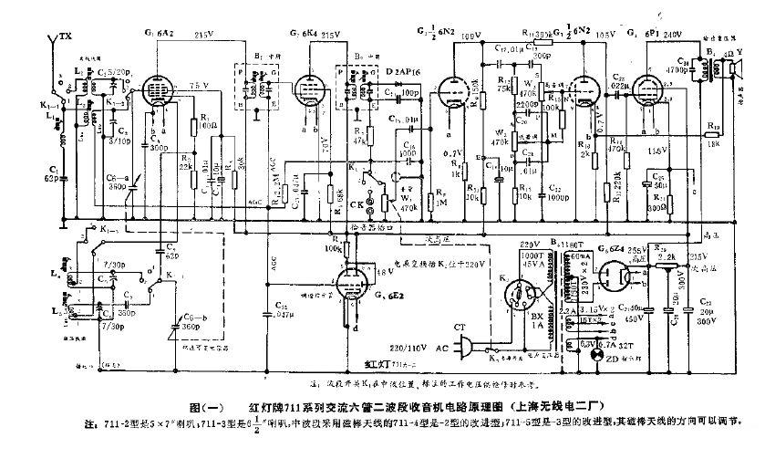 電子管錄音機(jī)電路圖大全收音機(jī)部分紅燈711系列技術(shù)參數(shù)圖表 1 &