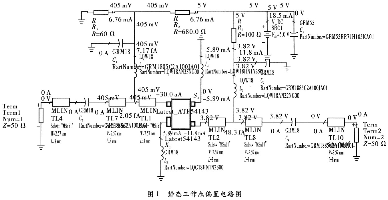 58 低噪聲放大器是接收機中最重要的模塊之一,文中采用了低噪聲、較高關聯(lián)增益、PHEMT技術設計的ATF-35176晶體管,設計了一種應用于5.5~6.5 GHz頻段的低噪聲放大器。為了獲得較高的增益,