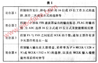 字是否屬于二次通信(關(guān)于一次通信和二次通信的內(nèi)容請參閱TLC320AC01的數(shù)據(jù)手冊)。第二串數(shù)據(jù)值用來對TLC320AC01的9個數(shù)據(jù)寄存器的某一個進(jìn)行配置。其中Bit15、14用來控制Modem中