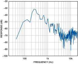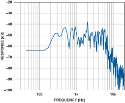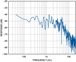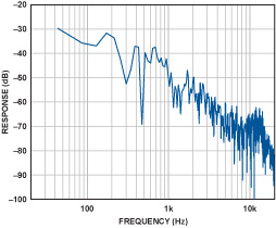 諧振頻率的MEMS加速度計(jì)和25 kHz諧振頻率的PZT傳感器的頻譜測(cè)量結(jié)果。MEMS加速度計(jì)在1 Hz至1 kHz頻段中的均方根(rms)輸出要比PZT加速度計(jì)高出大約30 mg或1.7%。圖2.
