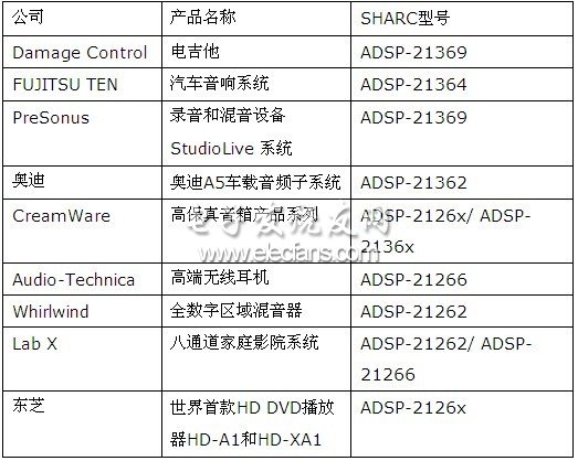 的Fujitsu Ten公司同樣選擇了浮點SHARC處理器ADSP-21364作為數(shù)字信號處理引擎,來增強其音頻放大器的性能。為汽車駕駛室環(huán)境中的音響設(shè)備提供高性能輸出、先進的聲音均衡效果和出眾的音質(zhì),在眾多