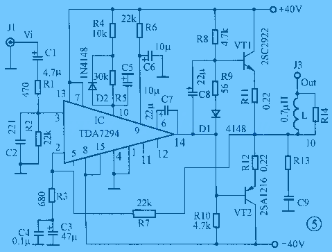 這是一款基于單電源IC TDA7294的優(yōu)秀音頻放大電路。TDA7294 旨在用作高保真應(yīng)用中的高品質(zhì)音頻 AB類(lèi)放大器。