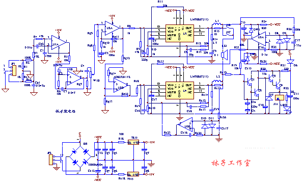 關(guān)鍵字:LM3886+NE5532重低音功放,重低音電路