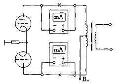 ??? 測量時先將功放管屏極與輸出變壓器的連接點用電烙鐵焊開,分別將萬用電表拔到直流電流250-500mA檔串入屏極回路內(nèi),一般前級無推動信號時所測得的是該管的靜態(tài)電流,推動信號最強時所測值即為滿載信號電流。