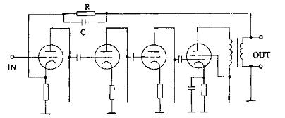 ??? 圖8-21中的RC負反饋網(wǎng)絡(luò)加在放大管的屏極,將輸出信號反饋一部分至該管的柵極。因為在共陰極電路中,電子管屏極的電位與柵極電位正好相反,故形成負反饋。柵極因負反饋加入而使輸入電壓降低,放大管的放大倍數(shù)也隨之降低;放大器因負載變化所引起的相位失真和頻率失真均得到改善,其電壓反饋量是由電阻R與C來決定的。一般電路中R的阻值為幾百千歐,它與放大器的頻率無關(guān)。C的容量為0.01-0.1左右,C與放大器的頻率特性相關(guān),可以對某一頻段的信號實施負反饋。