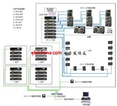 ??? 所有影廳的DCP300影院處理器連接到影城內(nèi)部局域網(wǎng)(LAN)中,影城的工作人員即可以在網(wǎng)絡(luò)的任意位置甚至通過無線網(wǎng)絡(luò)隨時(shí)隨地的監(jiān)控影城中所有音頻設(shè)備的工作狀態(tài)和運(yùn)行情況。