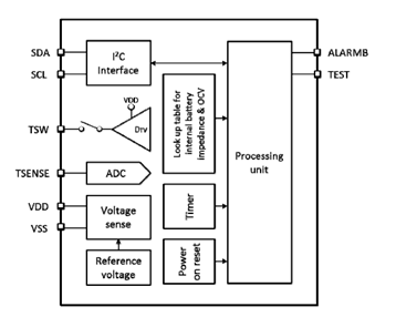 LC709203F可采用WDFN8和WLCSP9兩種封裝方式,其模塊圖如圖3 所示。其中,