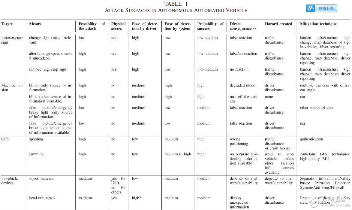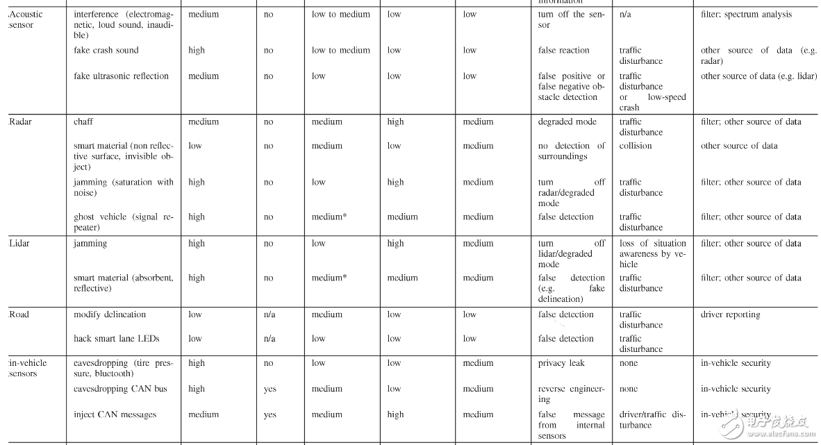 人車潛在的被攻擊風(fēng)險,列出了12種無人車可能被攻擊的對象。