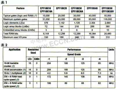ALTERA公司推出的采用0.25μm CMOS ROM工藝規(guī)程的結(jié)構(gòu)性能優(yōu)良、高密度的FLEX10K系列器件產(chǎn)品,片內(nèi)門(mén)數(shù)已經(jīng)達(dá)到25萬(wàn),其資源如表1。