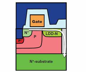 在關(guān)斷狀態(tài)下,功率MOSFET的體二極管結(jié)構(gòu)的設(shè)計是為了阻斷最小漏極-源極電壓值。MOSFET體二極管的擊穿或雪崩表明反向偏置體二極管兩端的電場使得漏極和源極端子之間有大量電流流動。典型的阻斷狀態(tài)漏電流在幾十皮安到幾百納安的數(shù)量級。